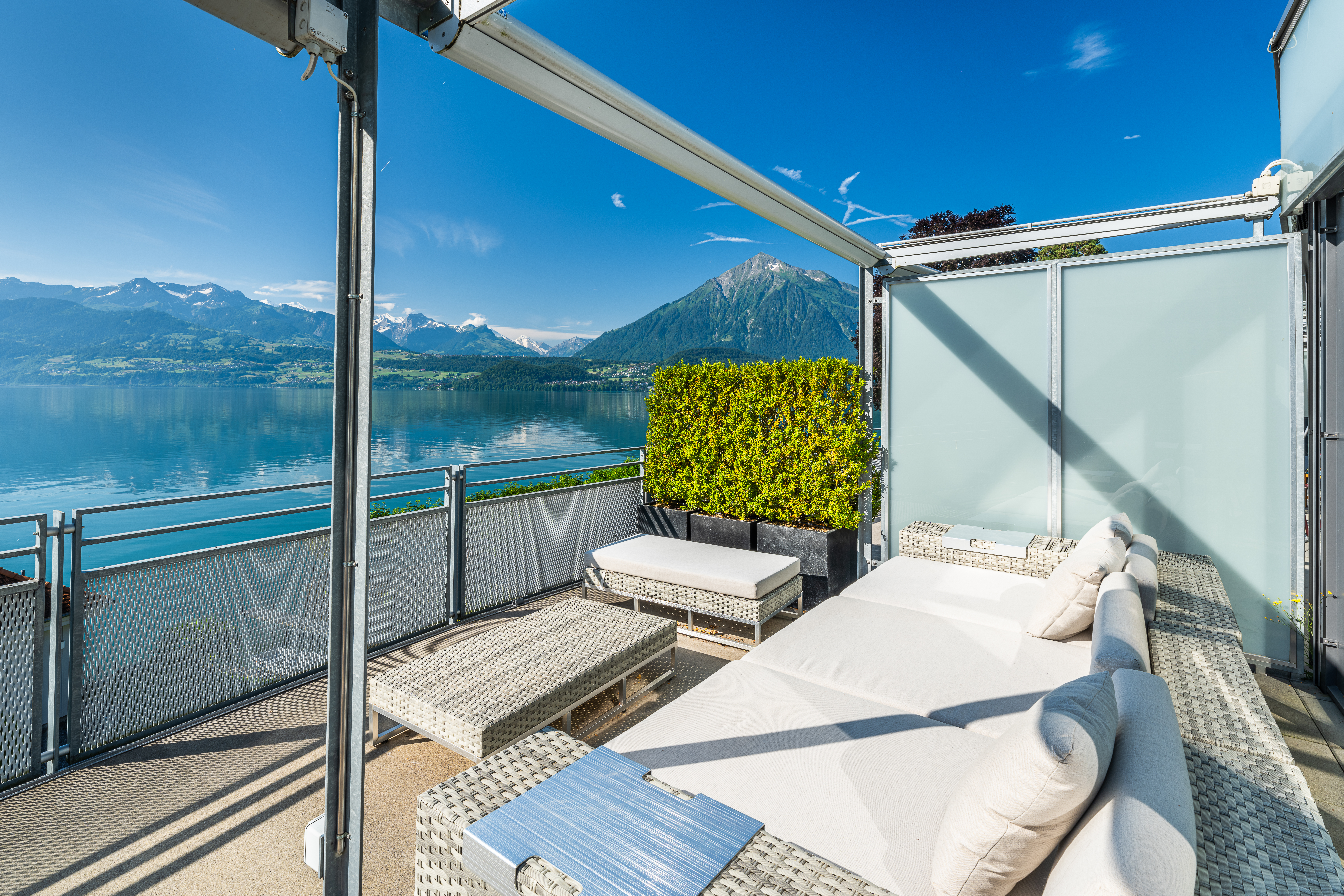 • Terrasse 30m2 mit See- und Panoramasicht inkl. Esstisch und Lounge